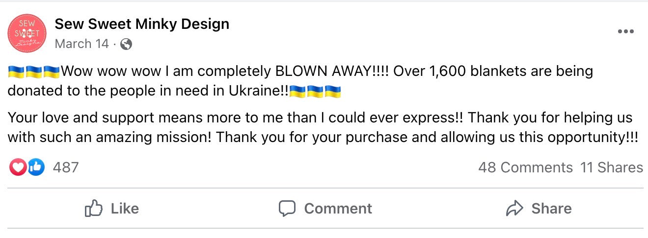 As many people know by now, on the world stage is the war for Ukraine. It has been a time of grief, loss, and survival for many innocent lives and has resulted in a need for aid and support around the globe. When we learned about the “ Driven to Assist, Utah for Ukraine” initiative we wanted to lend a hand and help in a way that we felt could bring help and happiness to the many who were suffering. Sew Sweet has been blessed by our many kind and generous customers who shared with us that dream and together we have been able to donate 1600 blankets to this mission. Find our page at Sew Sweet|Ukraine and follow KSLTV’s story at KSLTV|Ukraine
