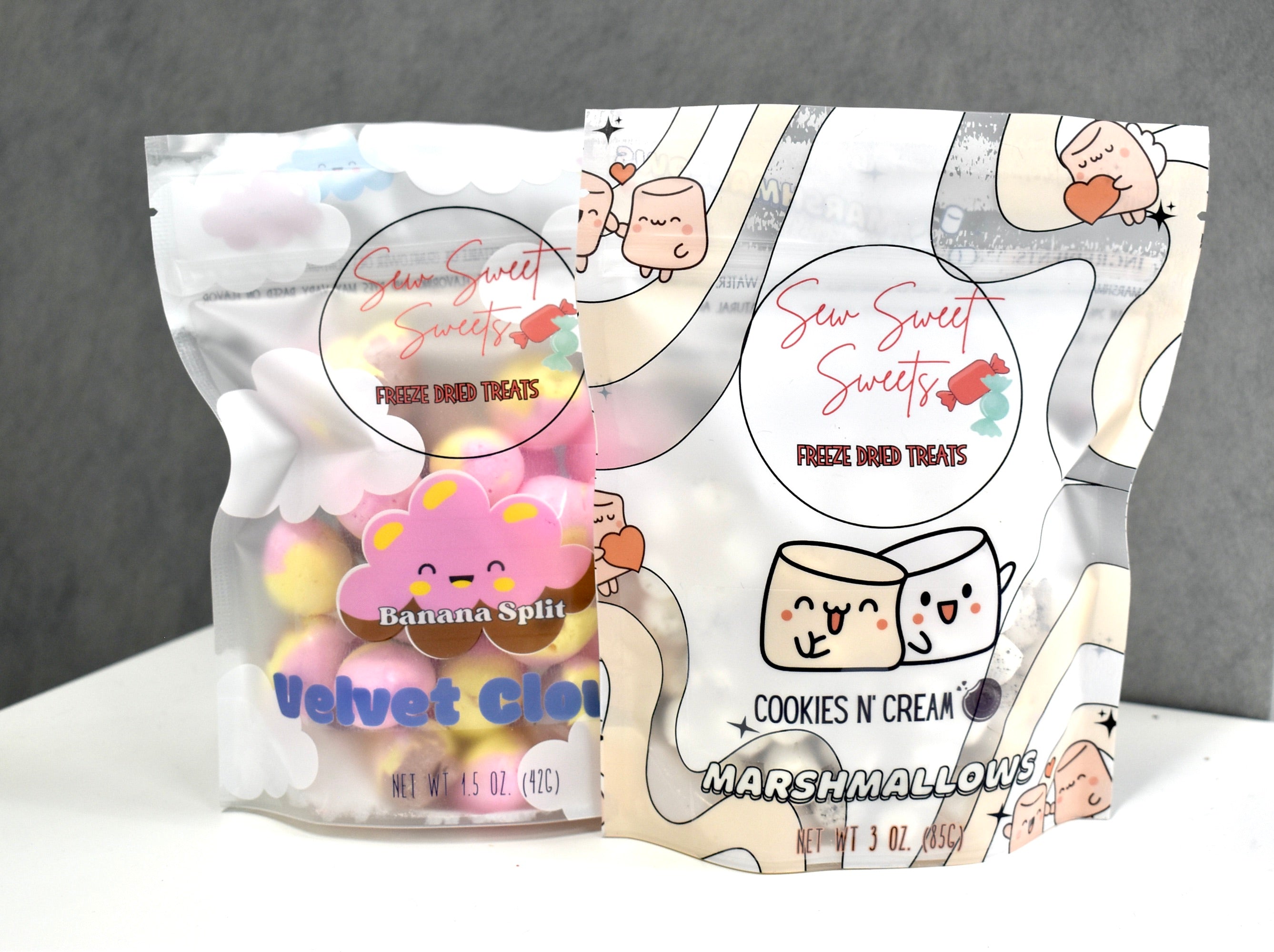 Freeze dried marshmallows with many different surprise flavors From Banana Creme Pie to Cookies and Cream!